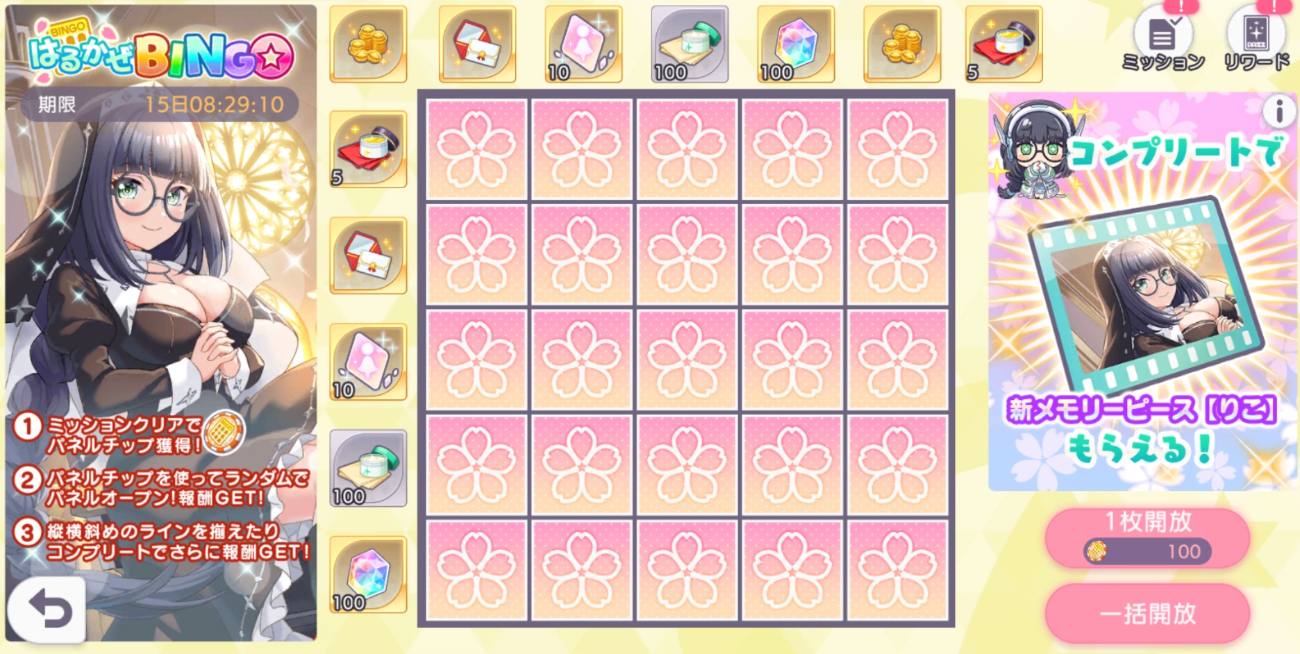 ・はるかぜBINGO:デイリーミッションクリアで獲得できるパネルチップを 使用し、BINGOマスを解放していくコンテンツ