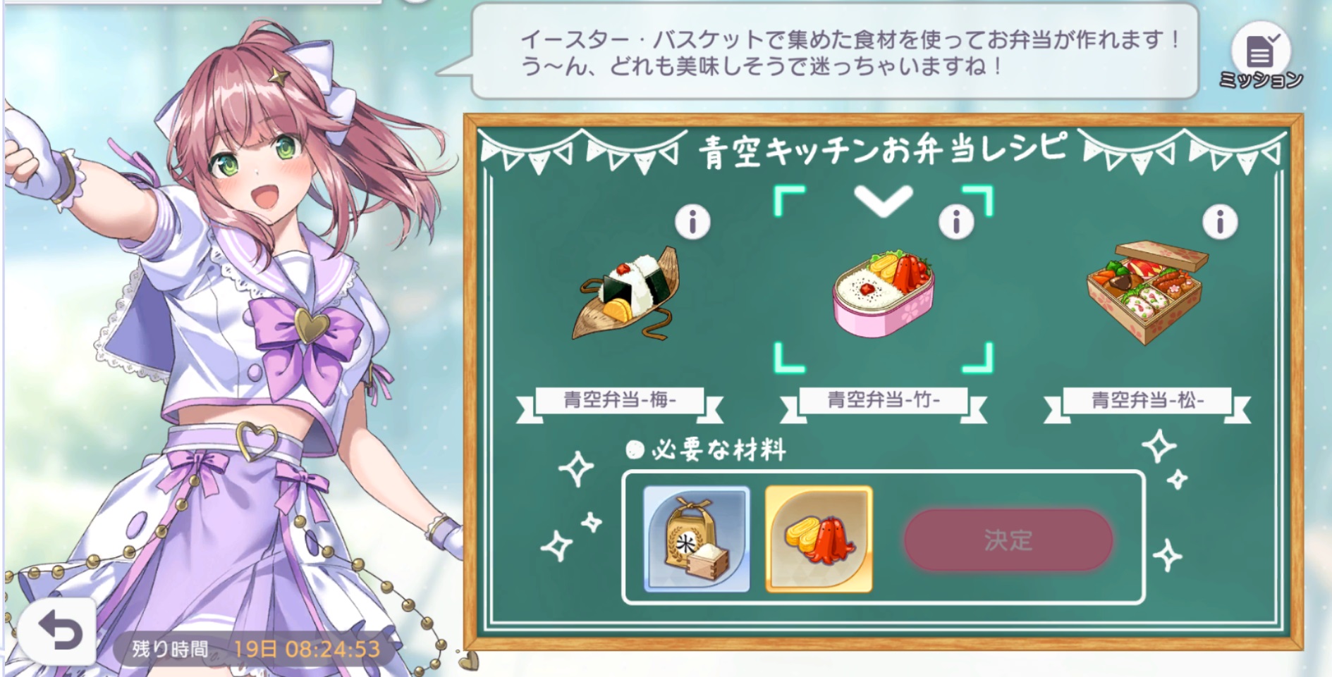食材アイテムを用いて弁当を作成することができます
